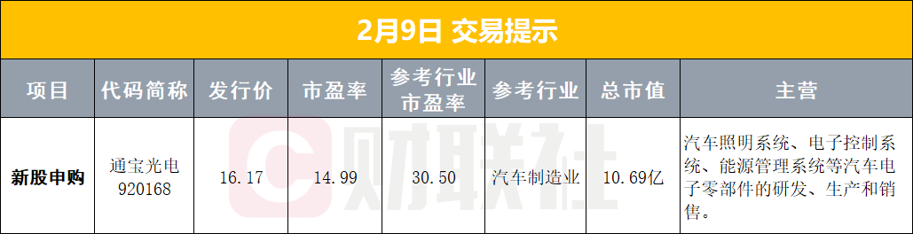 导读:财联社2月9日投资避雷针,近日,A股及海外市场潜在风险事件如下。国内经济信息方面包括:1)上海航运交易所报告显示,市场逐步转淡,沿海散货综合指数弱势下行;2)1月乘用车市场新车降价力度算术平均达到3.7万元;公司方面重点关注包括:1)萃华珠宝主要银行账户被冻结,2月10日起股票简称变更为“ST萃华”;2)天晟新材因涉嫌信息披露违法违规被证... |