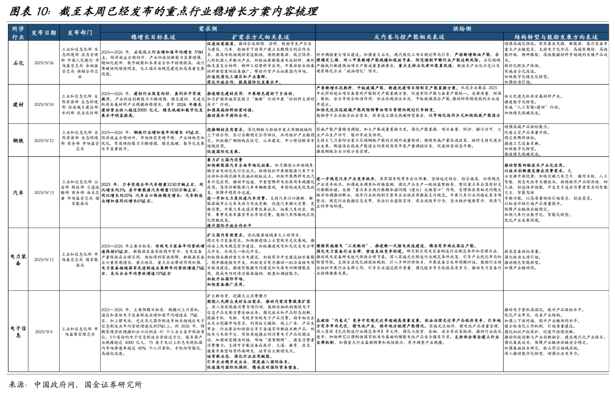 “反内卷”政策导向重塑行业生态,改善企业盈利预期。多个方案直接针对“内卷式”竞争提出治理措施,光伏制造业明确“依法治理光伏等产品低价竞争”,汽车行业则通过“加强成本调查和价格监测”来规范竞争秩序。这种政策干预将有效遏制部分行业的非理性价格战,帮助企业从低价竞争中解脱出来,将更多资源投向技术创新与品质提升,从而改善整体行业的盈利能力与估值水平。