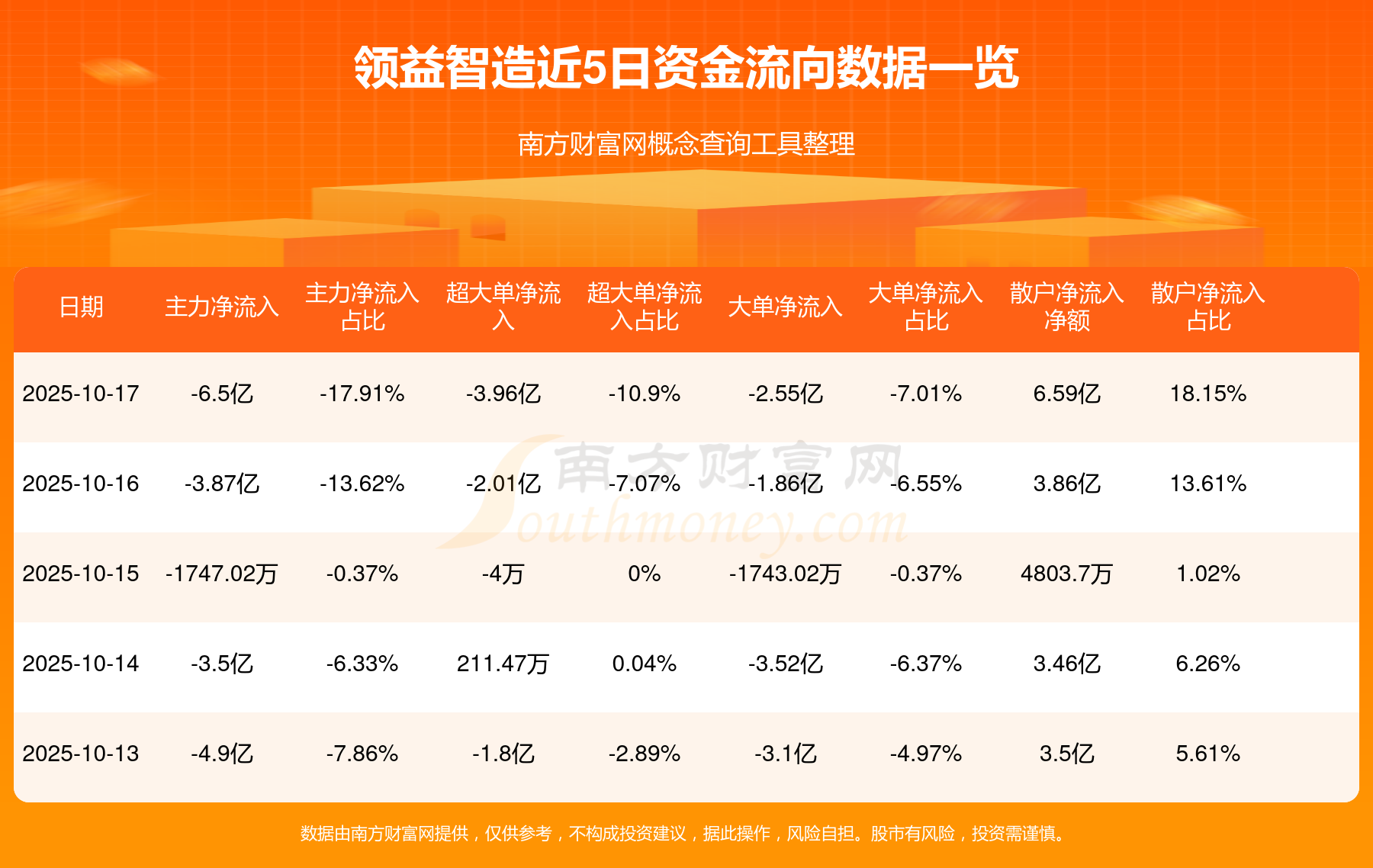 10月17日消息,资金净流出6.5亿元,超大单净流出3.96亿元,成交金额36.32亿元。
