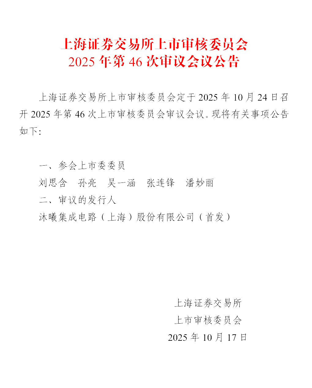 记者从上交所获悉,沐曦集成电路(上海)股份有限公司(简称“沐曦股份”)科创板IPO,将于10月24日接受上市审核委员会审议。