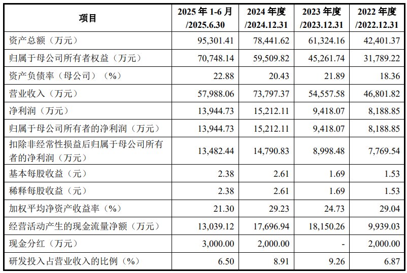 财务方面,于2022年度、2023年度、2024年度及2025年1-6月,好盈科技实现营业收入约为4.68亿元、5.46亿元、7.38亿元、5.8亿元人民币;同期,净利润分别为8188.85万元、9418.07万元、1.52亿元、1.39亿元人民币。