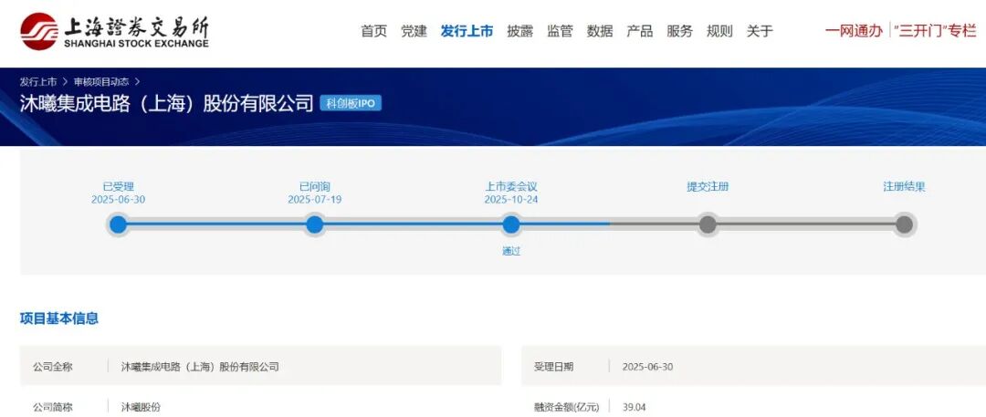 10月24日,上交所官网显示,沐曦集成电路(上海)股份有限公司(简称“沐曦股份”)科创板IPO项目获得上市委审议通过。