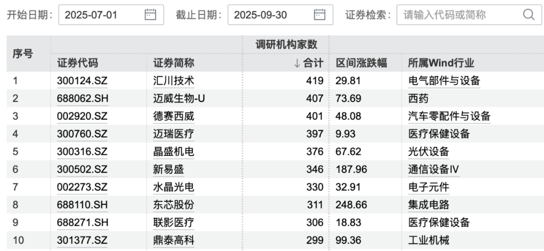 第三季度,近200家公司获上百家机构调研,其中,机器人概念龙头汇川技术)