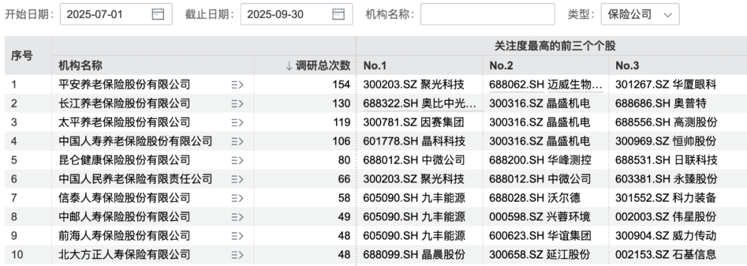 保险公司方面,平安养老、长江养老、太平养老、国寿养老调研总次数均超百次。