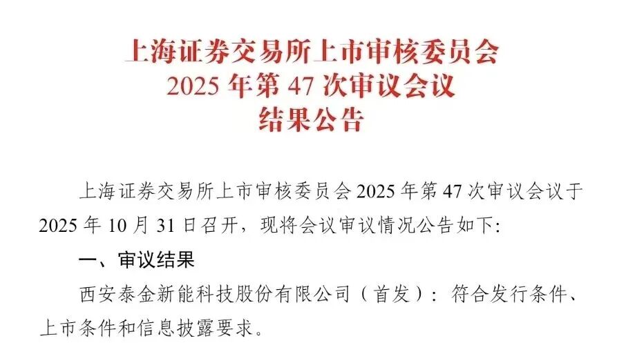 2025年10月31日,上海证券交易所上市审核委员会2025年第47次审议会议审议通过西安泰金新能科技股份有限公司上市申请,将登陆科创板。在此,新兰特向泰金新能致以最热烈的祝贺!