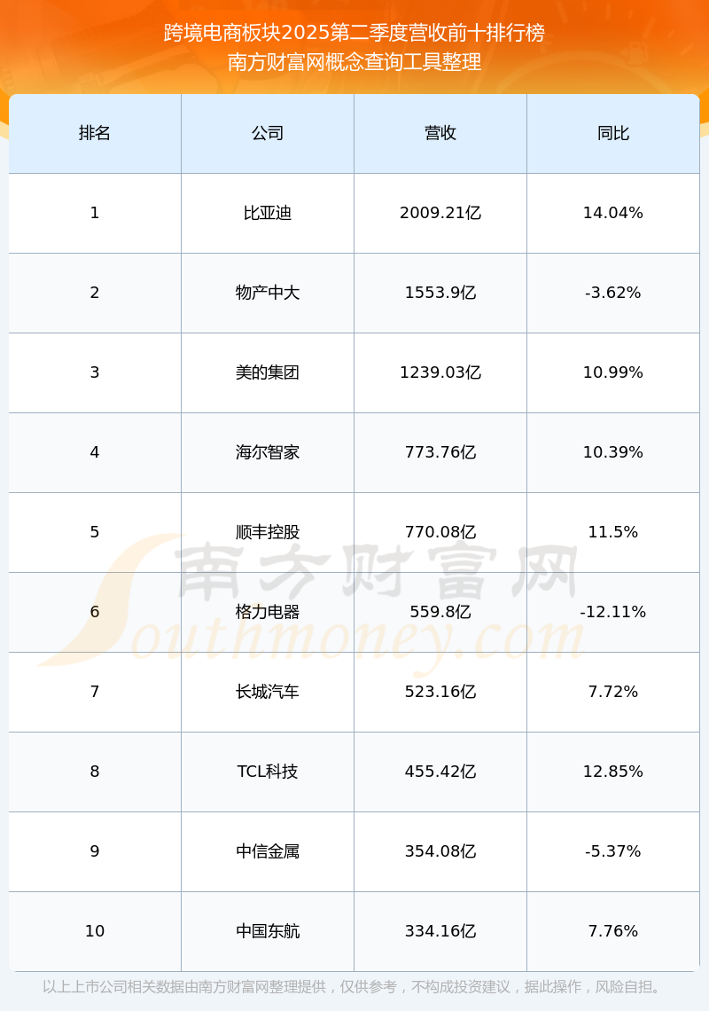 按照概念查询工具统计,该股所属板块为跨境电商板块,该板块共有414只股票,华鼎股份2025第二季度营收在该板块中排名为第156名,该板块2025第二季度营收排名前十的股票如下表: