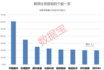 解禁比例来看,华厦眼科的解禁比例最高,达60.85%,泓博医药(301230)、耐科装备、云鼎科技、瑞纳智能)