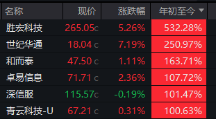 事实上,随着摩尔线程上市进程持续,A股市场的部分“摩尔线程概念股”也受到了市场关注。数据显示,自今年年初至今,A股摩尔线程指数已整体上涨超90%。从个股年初至今的累计涨幅来看,胜宏科技)