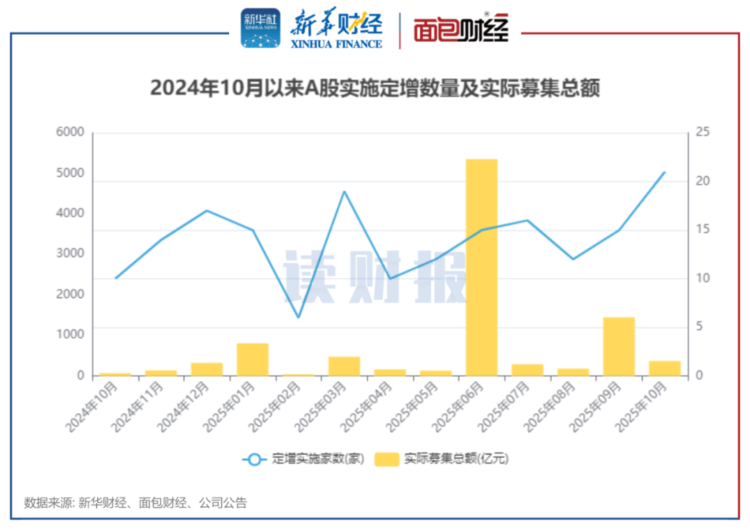 统计显示,2025年10月,A股上市公司共计实施定增21起,同比上升110%;实际募资总额约372.73亿元,同比上升424%。中远海能)