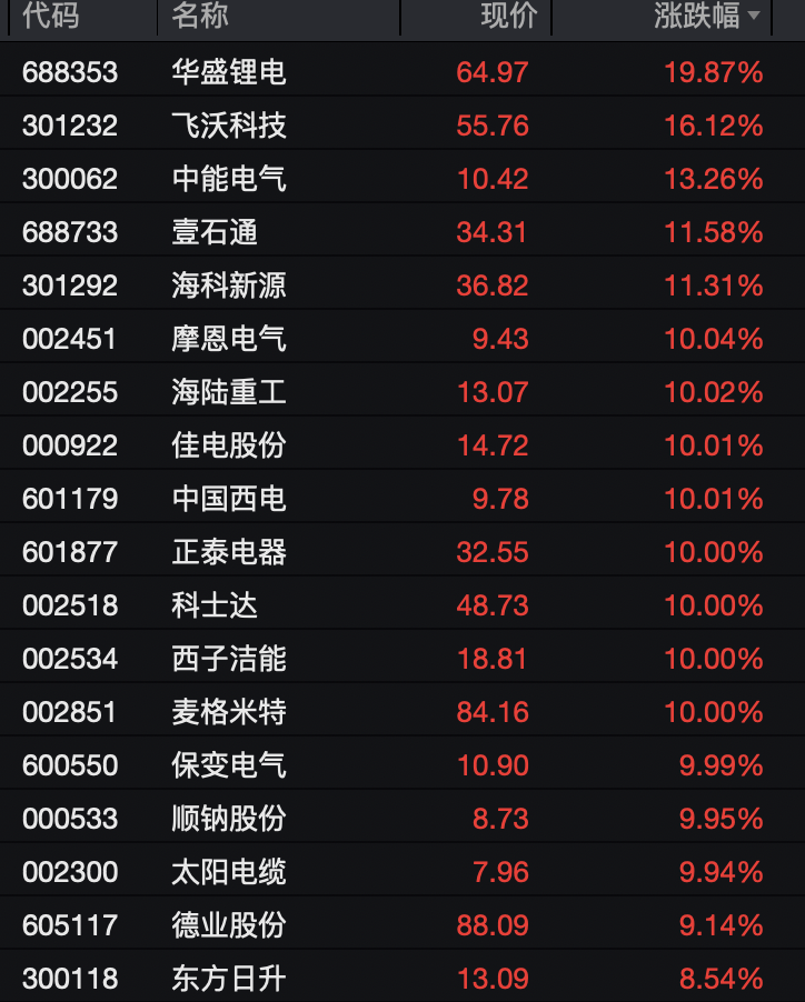 电力设备板块再创年内新高 多个板块掀涨停潮