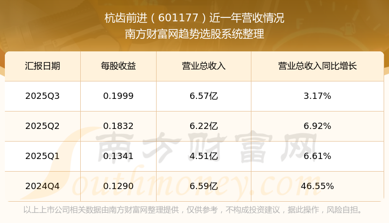 按照概念查询工具统计,该股所属板块为齿轮箱板块,该板块共有14只股票,杭齿前进2025第三季度营收在该板块中排名为第6名,该板块2025第三季度营收排名前十的股票如下表:
