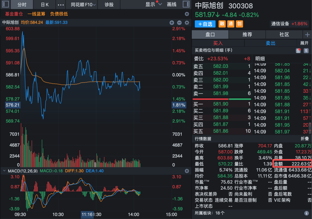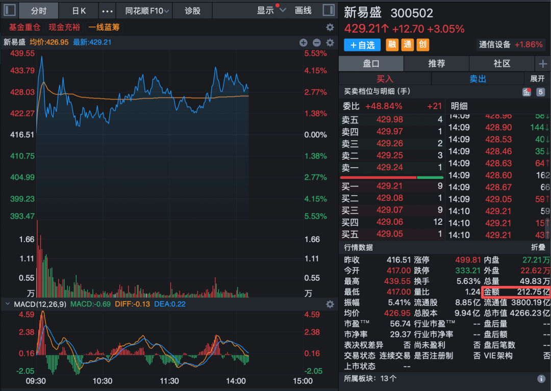 href=/300502/>新易盛(300502)两只股票均属于基金重仓股,成交额均突破200亿元。