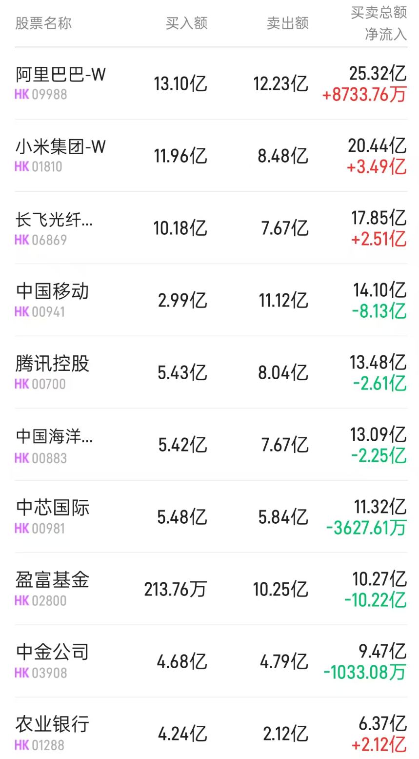 此外,美团-W(03690)、腾讯(00700)分别获净买入4.34亿、1.07亿港元。而阿里巴巴-W(09988)、中海油(00883)、中国移动(00941)分别遭净卖出1.55亿、2.25亿、12.94万港元。