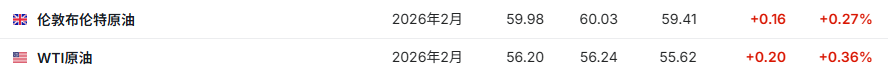 3.截至发稿,WTI原油涨0.36%,报56.20美元/桶。布伦特原油涨0.27%,报59.98美元/桶。