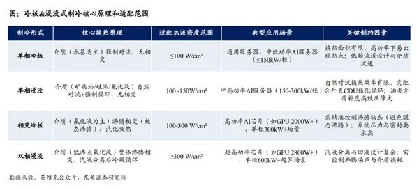 如今,英伟达Rubin架构芯片已开始小规模出货,适配新架构的散热技术需求亦开始释放。数据显示,Rubin架构的热设计功耗(TDP)达到2300W,整柜功率约200KW,而单相冷板的设计上限为150KW/柜,因此已无法适用于Rubin架构。相变式冷板与浸没式方案是目前更可靠的两大方案。