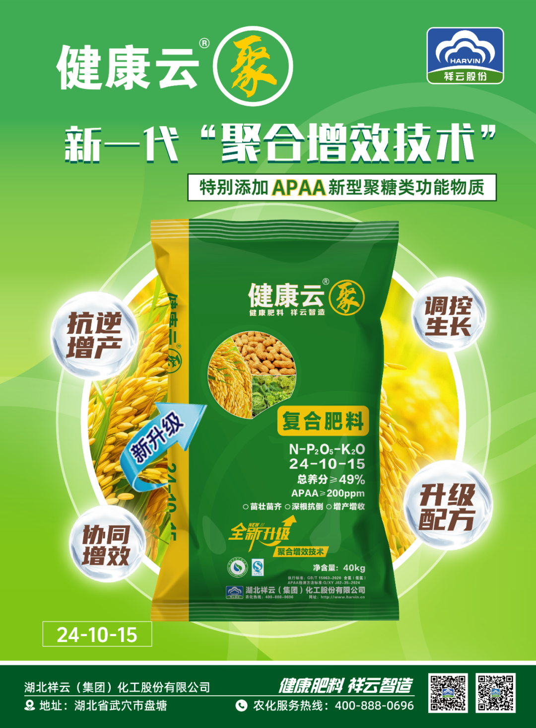 健康云聚24-10-15搭载新一代聚合增效技术,并科学添加APAA新型聚糖类功能物质(含量≥200ppm),形成“促根-稳长-增效”的技术闭环: