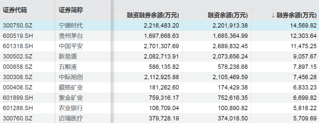 数据显示,截至12月26日,A股市场融券余额居前的股票分别为宁德时代)