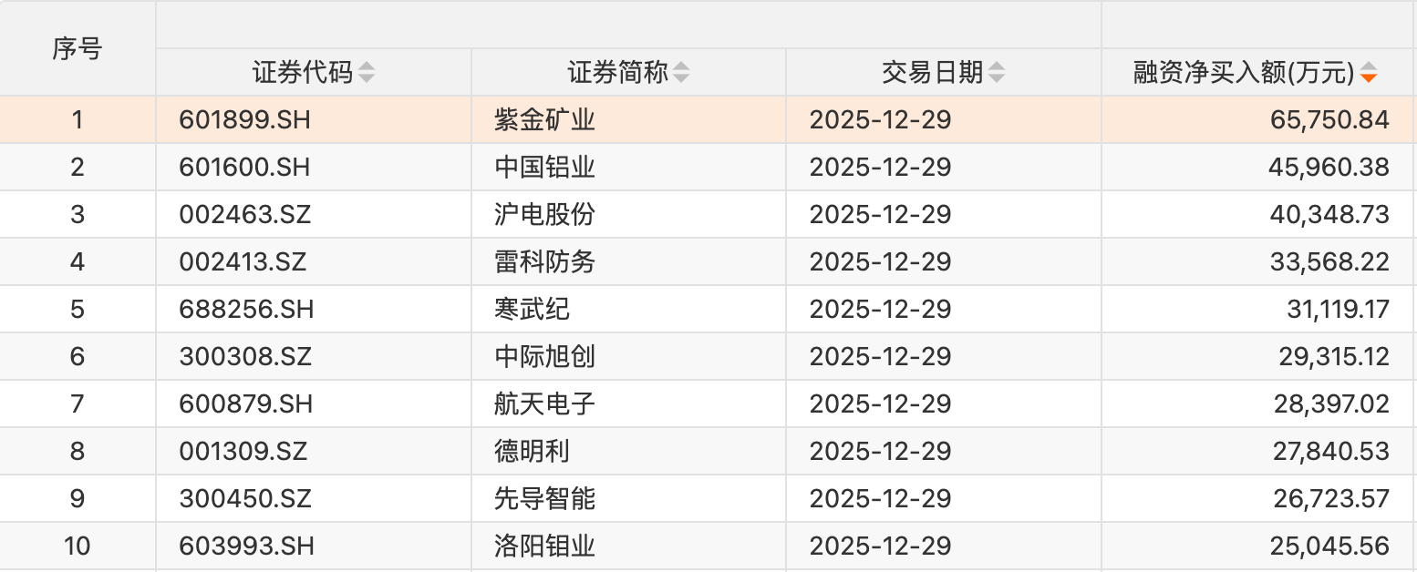 href=/601899/>紫金矿业(601899)获融资净买入额居首,净买入6.58亿元;融资净买入金额居前的还有中国铝业)
