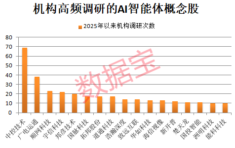 据证券时报·数据宝统计,今年以来共有17只AI智能体概念股获机构调研10次以上。包括中控技术、广电运通)