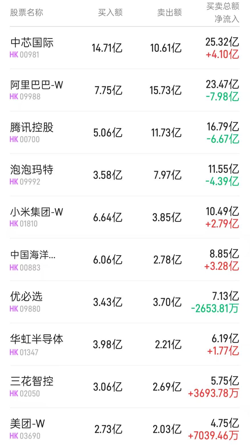 此外,小米集团-W(01810)获净买入2.26亿港元,而中国移动(00941)遭净卖出9.92亿港元。