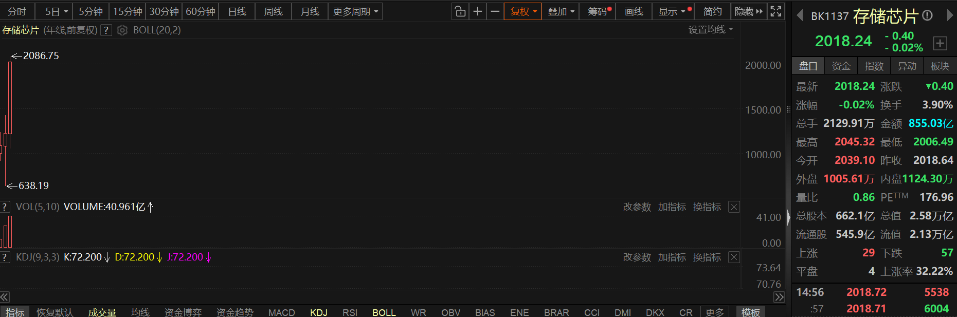 而存储芯片行业也在2025年开启了“超级周期”,各企业存储芯片价格一涨再涨,“一芯难求”也成为了今年储能行业和存储芯片行业共同的“代名词”。在此背景下,半导体指数走出了2021年板块上市以来最高的年度涨幅,截至2025年12月31日日间收盘,半导体指数报1971.37,年内最高冲至2143.82,最终年线收涨46.5%;存储芯片指数也迎来了其指数上市以来的年度最强表现,年内最高冲至2086.75的高位,同样刷新其指数上市以来的新高,截至12月31日日间收盘,存储芯片指数报2018.24,年线涨幅达65.11%。