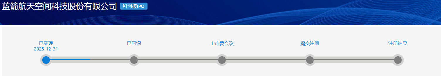 【大河财立方消息】12月31日,蓝箭航天空间科技股份有限公司(以下简称:蓝箭航天)科创板IPO获受理。