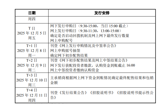 发行重要时间安排