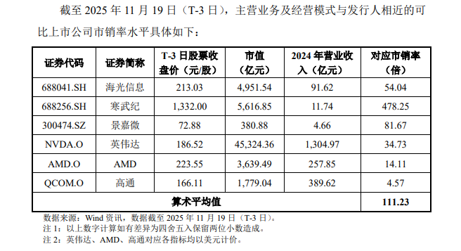 公司表示,本次发行价格114.28元/股对应的发行人2024年摊薄后静态市销率为122.51倍,高于同行业可比公司2024年静态市销率平均水平,存在未来发行人股价下跌给投资者带来损失的风险。发行人和保荐人(主承销商)提请投资者关注投资风险,审慎研判发行定价的合理性,理性做出投资。
