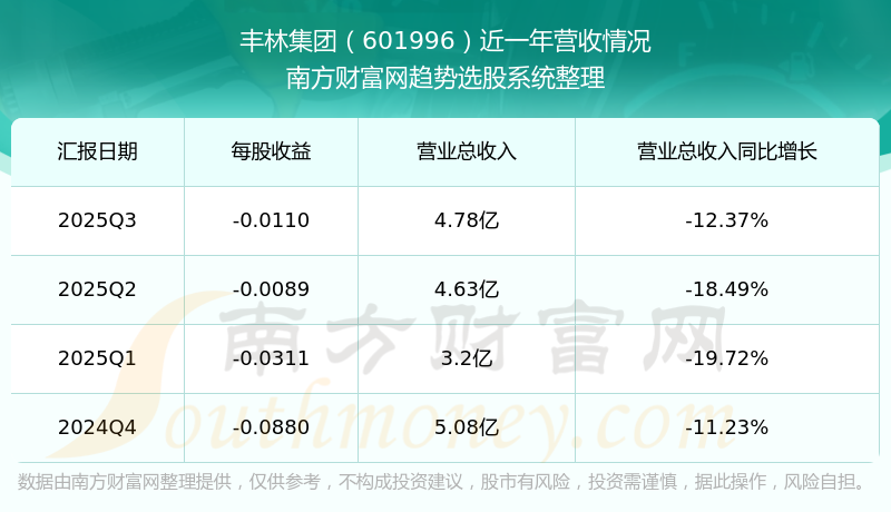 丰林集团股票近一年营收情况如下表: