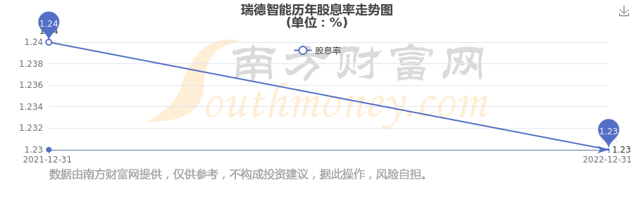 近年瑞德智能年度股息率走势如下图: