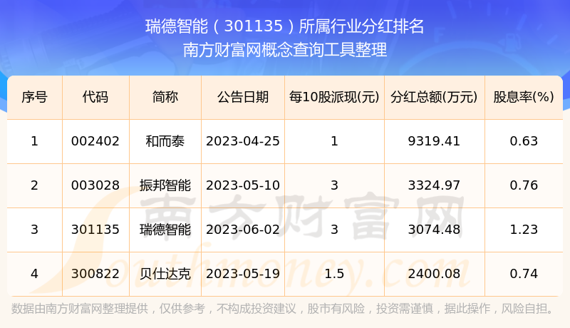 二、瑞德智能301135行业分红排名