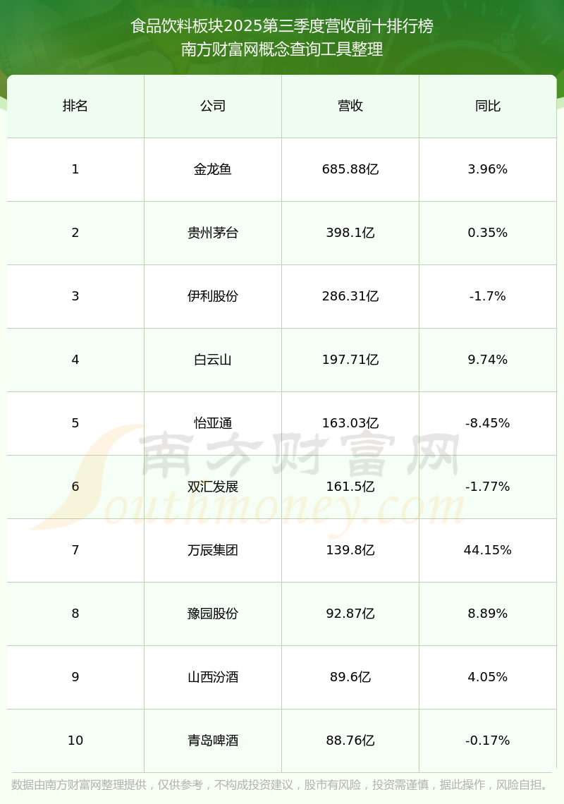 按照概念查询工具统计,该股所属板块为食品饮料板块,该板块共有244只股票,天润乳业2025第三季度营收在该板块中排名为第103名,该板块2025第三季度营收排名前十的股票如下表: