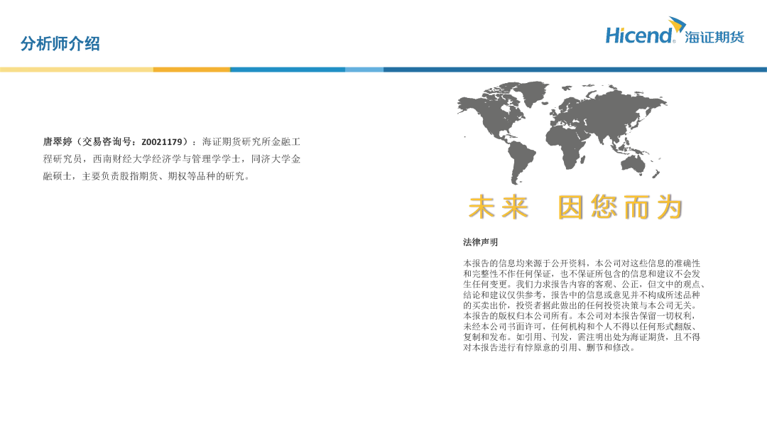 唐翠婷(交易咨询号:Z0021179):海证期货研究所金融工程研究员,西南财经大学经济学与管理学学士,同济大学金融硕士,主要负责股指期货、期权等品种的研究。
