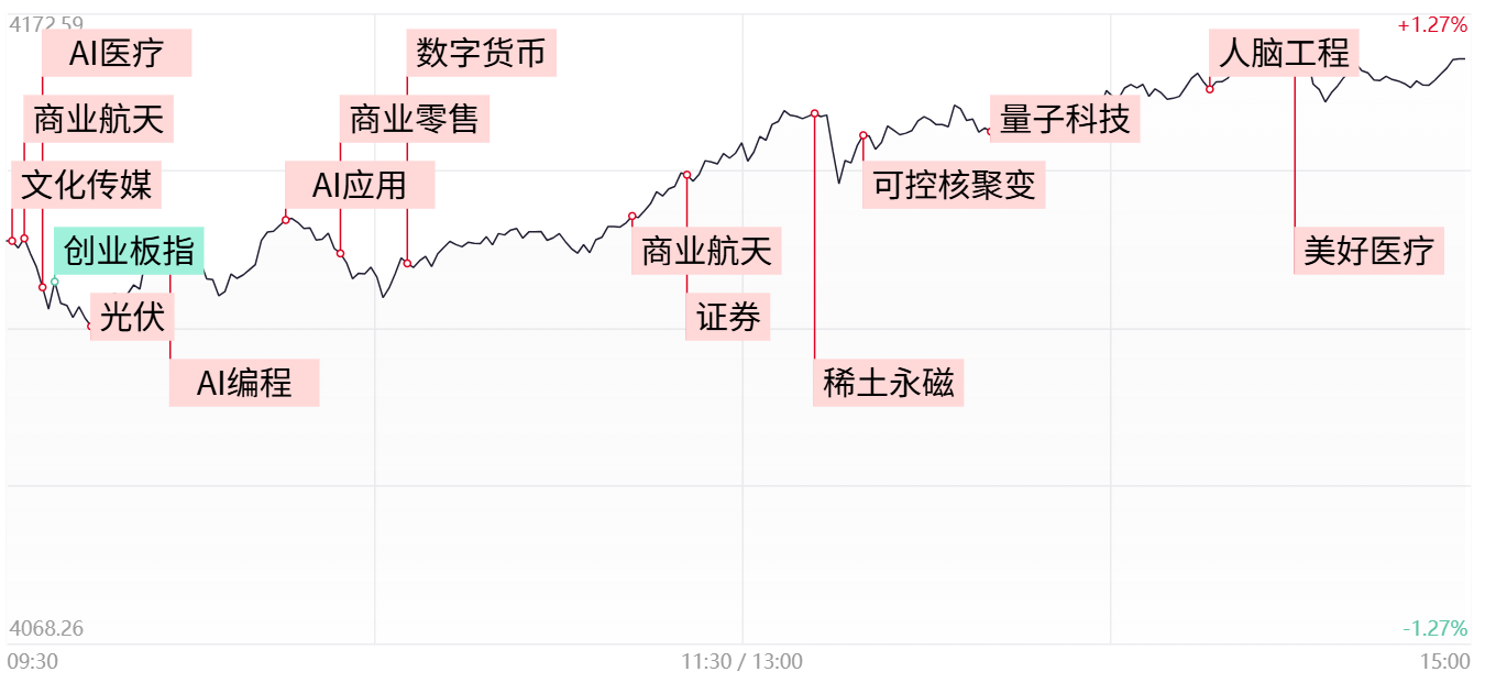 AI应用持续爆发,引力传媒6天5板,众诚科技、利欧股份、美年健康、天下秀、省广集团、易点天下2连板,蓝色光标、汉得信息、中文在线、光云科技、万事利等个股同样涨停。