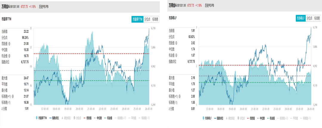 全A注册制以来估值PE分位数98%,PB分位数64%,处于中高位的水平。