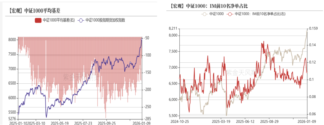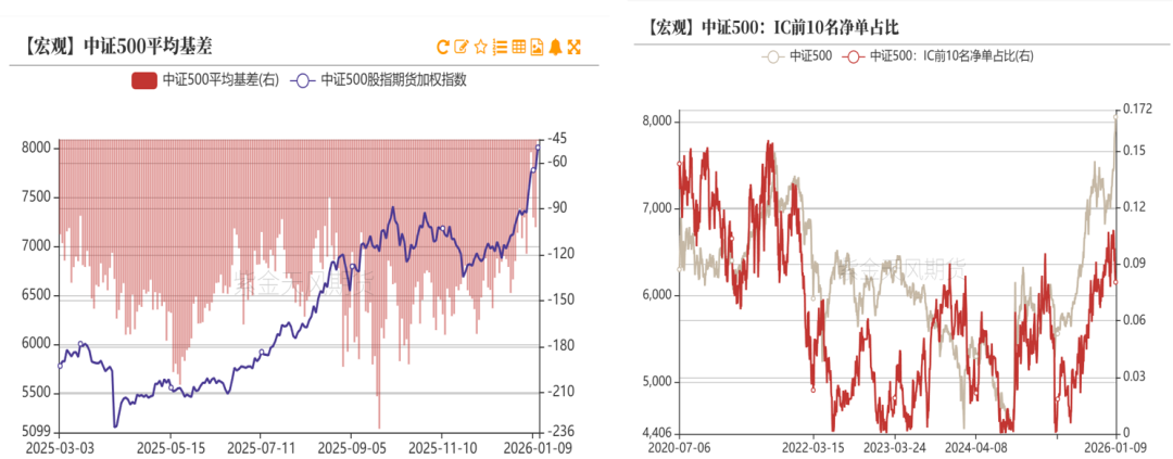 IC前十会员净空占比高位回落,平均基差贴水缩小,保值盘比例较高。