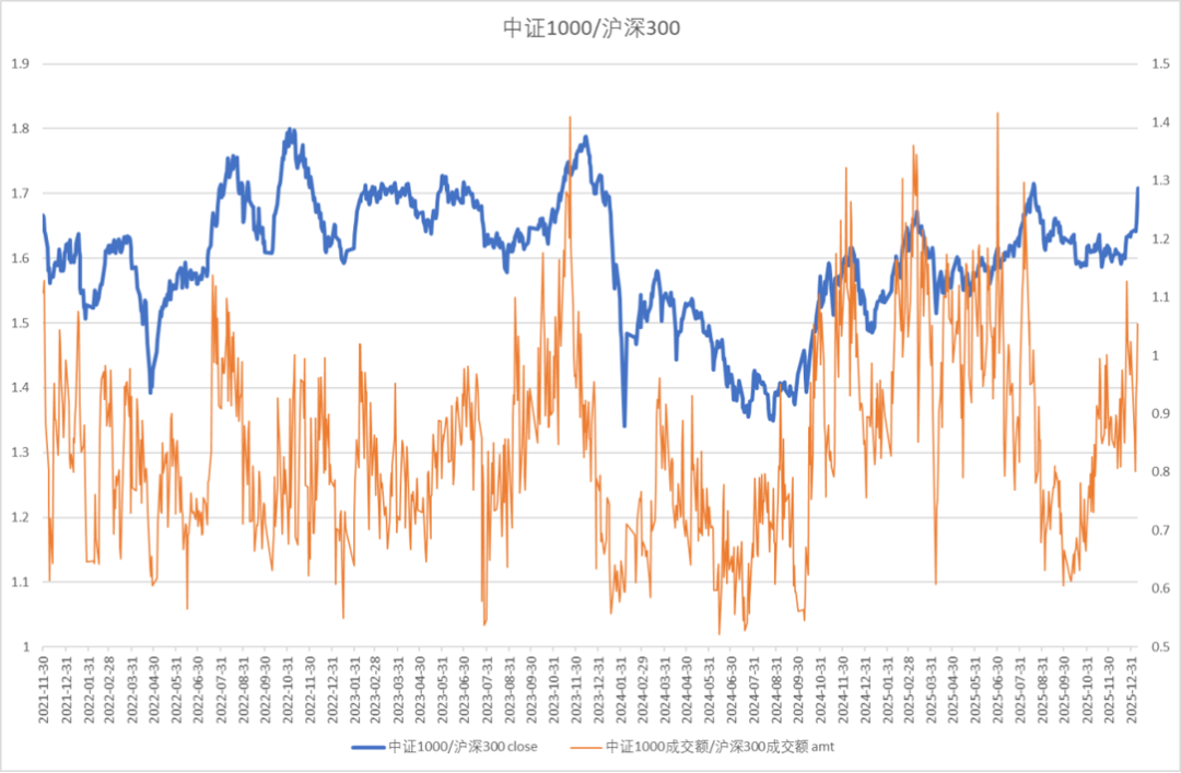 中证1000与沪深300的比值和成交占比大幅回升,成长股继续跑赢蓝筹股。