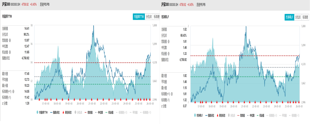 沪深300PE十年分位点90%,PB分位点68%,处于中高位。