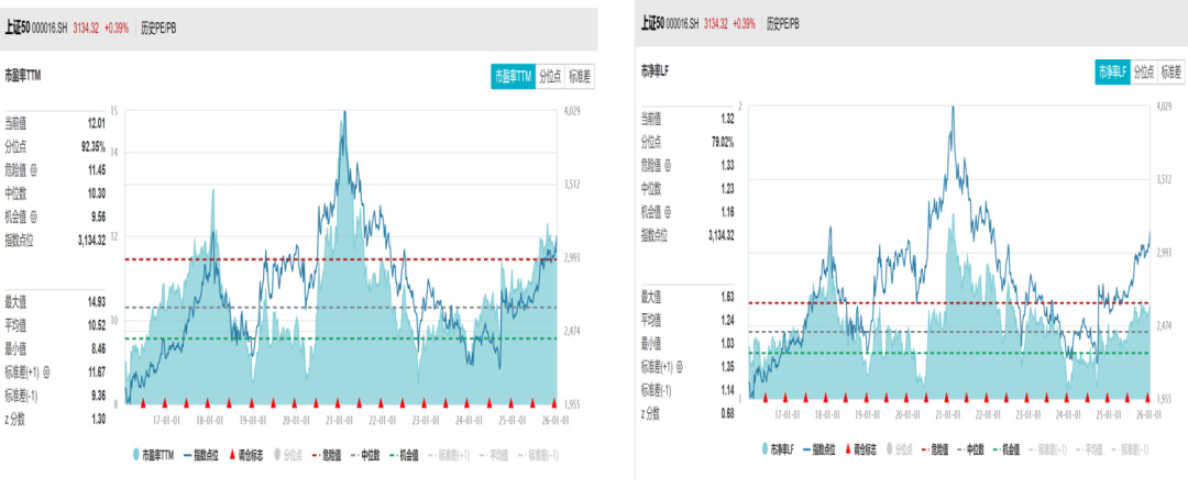 上证50PE十年以来分位点92%,PB分位点79%,处于历史中高位。
