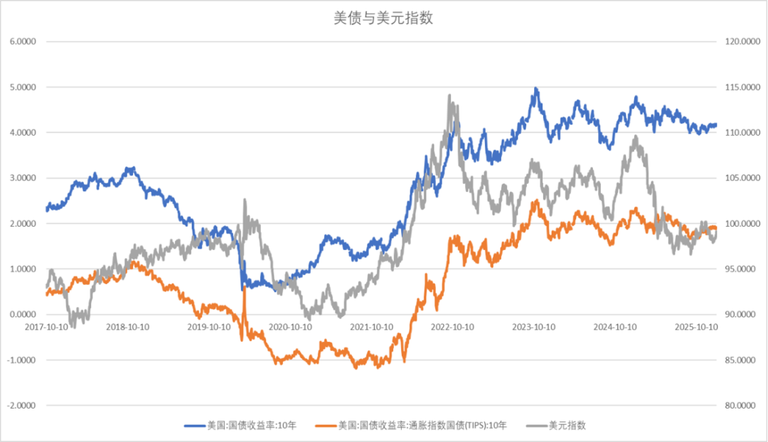 美十年期国债利率、实际利率维持横盘震荡,美元小幅反弹。