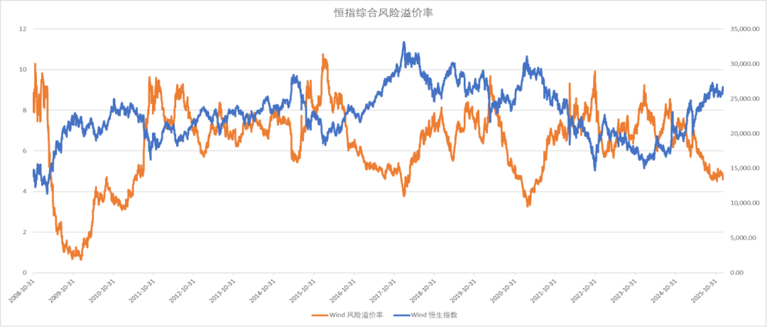 10年期美债利率4.18%,恒生指数以中美10年期国债平均收益率计算风险溢价率偏低,恒指偏贵。