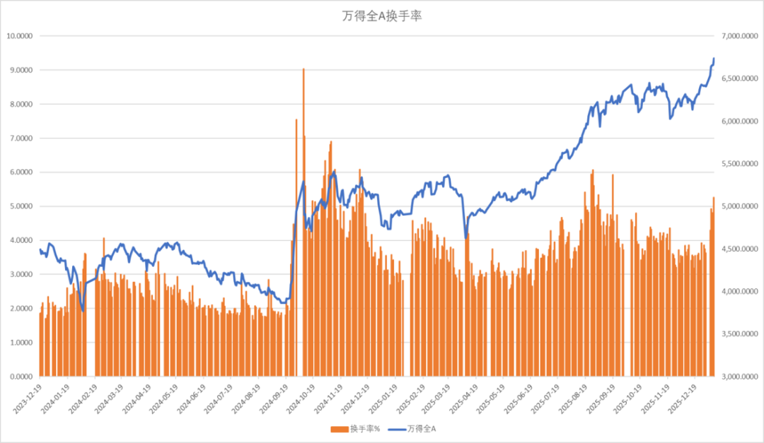 全A指数换手率大幅上升,成交金额再度达到3万亿。