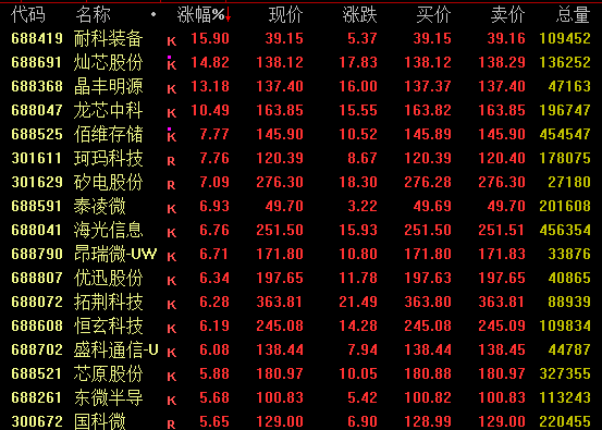 半导体板块盘中强势上扬,截至收盘,灿芯股份涨近15%,晶丰明源涨逾13%,龙芯中科涨超10%,海光信息、恒玄科技等涨超6%。