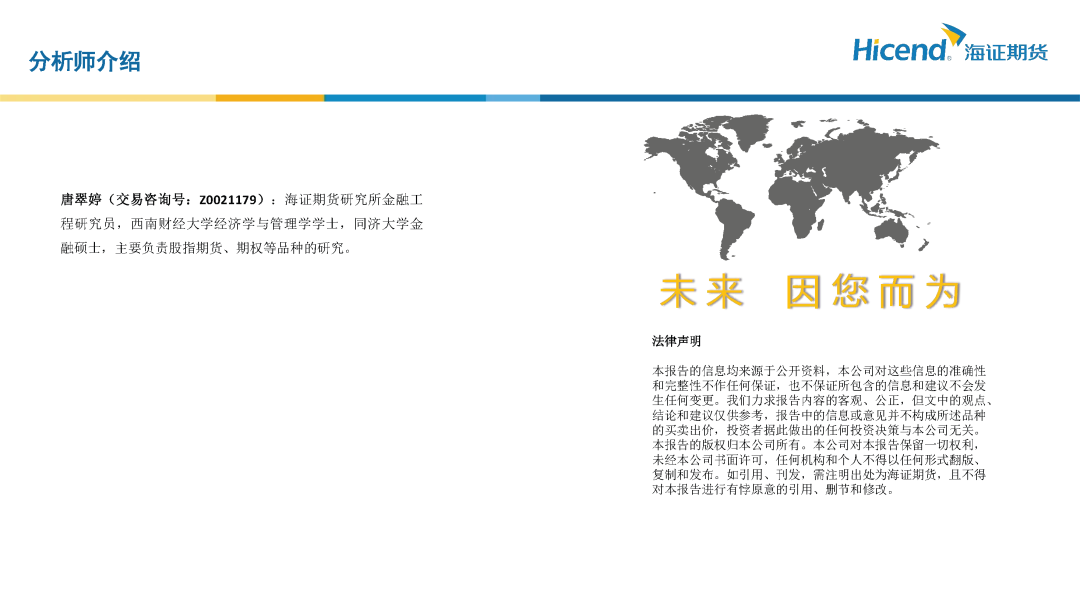 唐翠婷(交易咨询号:Z0021179):海证期货研究所金融工程研究员,西南财经大学经济学与管理学学士,同济大学金融硕士,主要负责股指期货、期权等品种的研究。