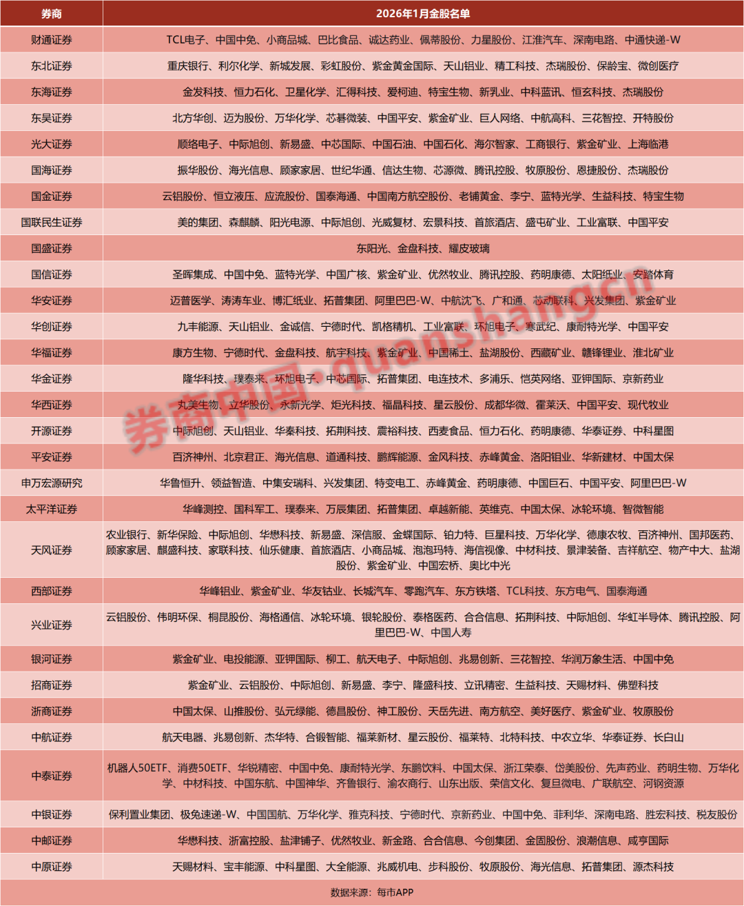 回顾2025年全年,券商金股在波澜壮阔的A股行情中收益亮眼。根据每市APP数据,国元证券月度金股组合在2025年以超80%的收益率居于第一,东北证券、开源证券去年收益率也近70%,东兴证券、华鑫证券、招商证券等收益率超60%。