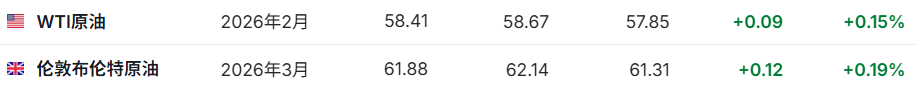 3. 截至发稿,WTI原油涨0.15%,报58.41美元/桶。布伦特原油涨0.19%,报61.88美元/桶。