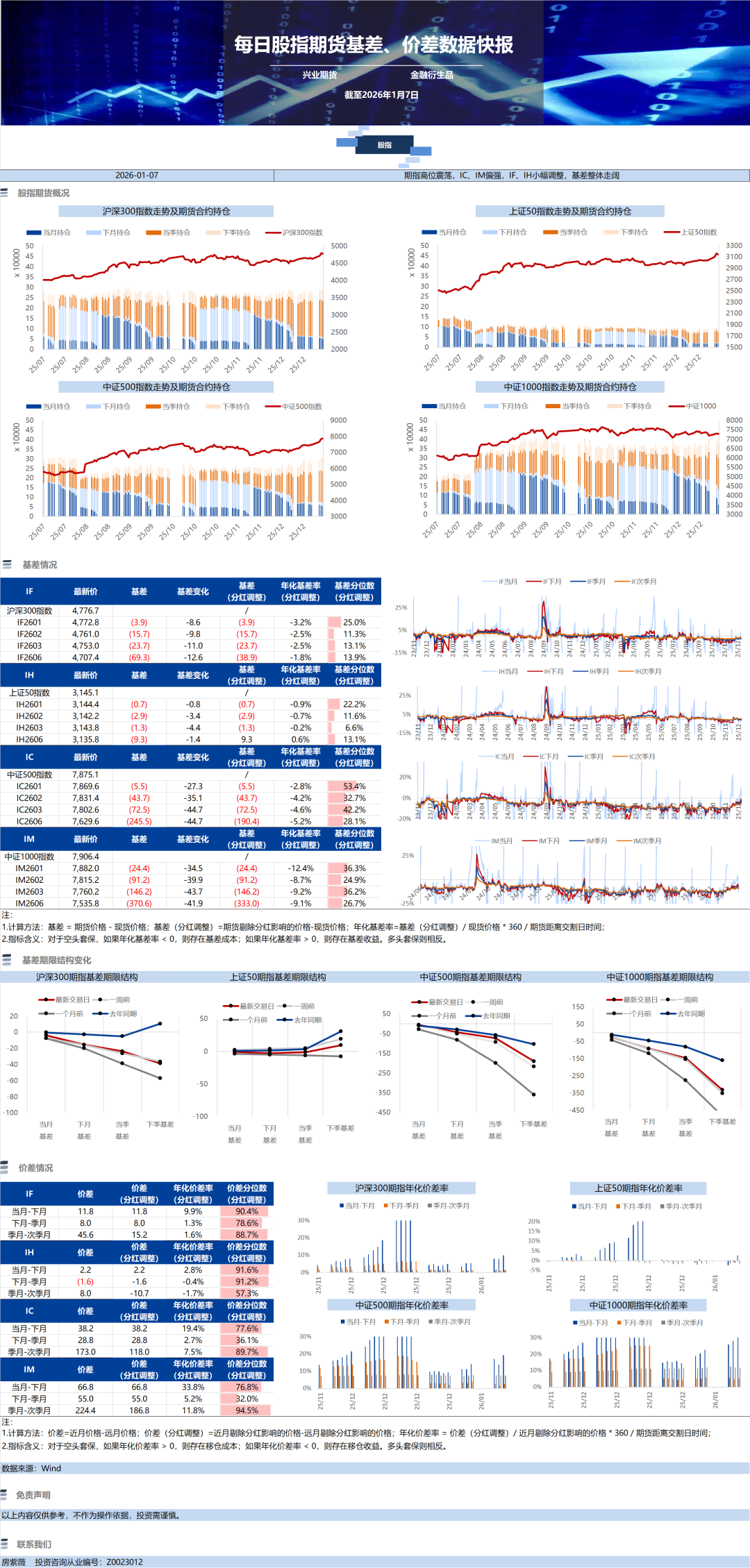 【期指日报】股指期货基差、价差数据快报-20260108