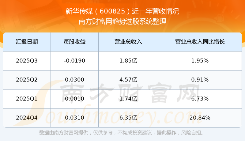 于2025年第三季度,新华传媒披露了其业绩表现,其中主营业务收入1.85亿元,相较于去年同期1.95%。此外,公司归属于母公司的净利润为-1974.66万元,同比增长了0.29%。在扣除所有非经常性损益后,净利润-2738.1万元,同比增长-52.89%。
