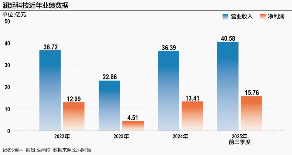 2022年至2024年及2025年前三个季度,澜起科技的收入分别约为36.72亿元、22.86亿元、36.39亿元、40.58亿元人民币,净利润分别约为12.99亿元、4.51亿元、13.41亿元、15.76亿元人民币。