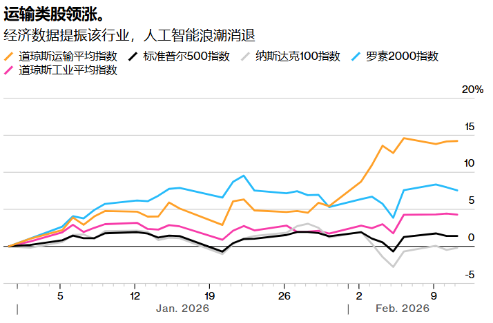 继上周供应管理协会公布的数据显示美国1月份制造业活动以2022年以来最快速度扩张之后,运输业指数再创历史新高。周三,在非农就业报告强于预期、表明劳动力市场正在企稳之后,该指数小幅走高。